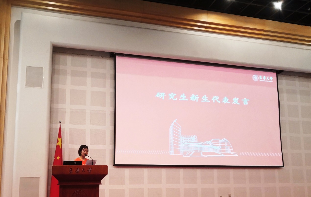 纺织化学与染整工程专业张元元同学作为研究生新生代表发言,她表达了自己能够成为一名东华人的喜悦感和自豪感,呼吁同学们在研究生生活中明确目标,学会学习,博采众长,厚积薄发,内强素质和外塑形象,成长为一名有信念、有本领、有担当的东华人。