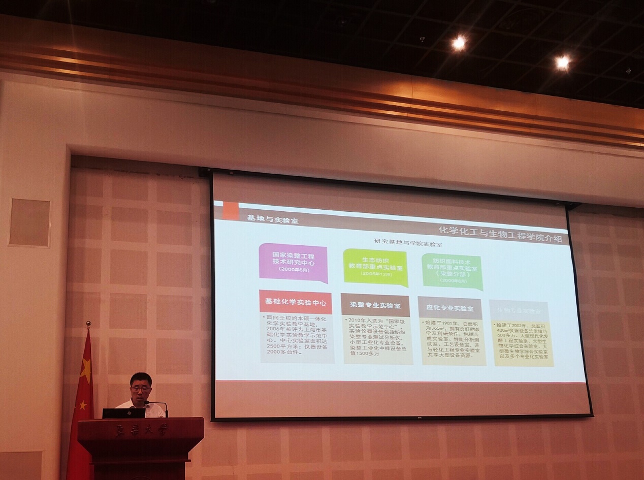 9月11日下午5点半,学院2019级新生迎新大会在世界杯官网松江校区图文信息中心第一报告厅顺利举行。学院党委书记宋丽贞,院长武培怡,学院党委副书记陈志刚,副院长毛志平、史向阳、黄焰根,生物系系主任何创龙,基础化学部主任邢彦军、纺化系副主任陈英,应化系副主任罗艳,纺化系特聘研究员麻祎蒙、生物系教师曹雪雁以及学院学生工作办公室老师出席大会。大会由2019级本科新生辅导员况晨主持。