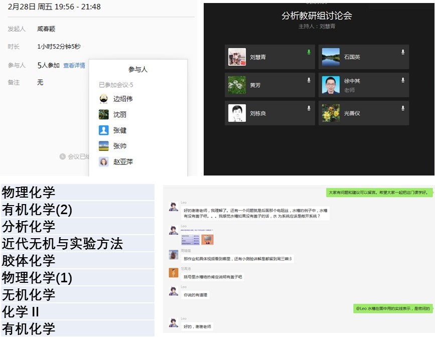 新冠肺炎疫情出现以来,全国人民在党中央、国务院的领导与指挥下,以疫情为命令,把防控当责任,坚决、坚定地打响了疫情阻击战。本学期化学部支部党员教师承担着世界杯官网化学化工、材料、环境等多个本科专业化学基础理论课程和实验课程的教学任务,时间紧,责任大,任务重。为了进一步响应“疫情防控,停课不停学,停课不停教”的号召,充分发挥基层党支部的战斗堡垒作用和党员教师的先锋模范作用,2020年2月25日化学部党支部组织开展了“抗击疫情,确保教学质量,党员教师在行动”的线上主题党日活动,支部书记边绍伟老师主持了视频会议,支部全体党员教师参加。