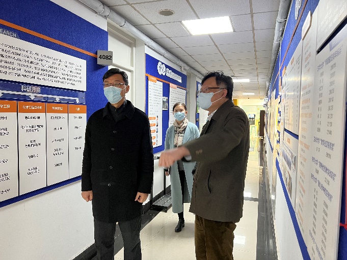 3月27日上午,党委书记刘承功、校党办主任罗薇娜、宣传部长任晓杰到化学化工与生物工程学院调研。同日,副校长、研究生院院长舒慧生、研究生院副院长俞昊等领导到学院调研。学院院长武培怡、副院长赵涛、史向阳、纪检委员何创龙等人陪同接待。