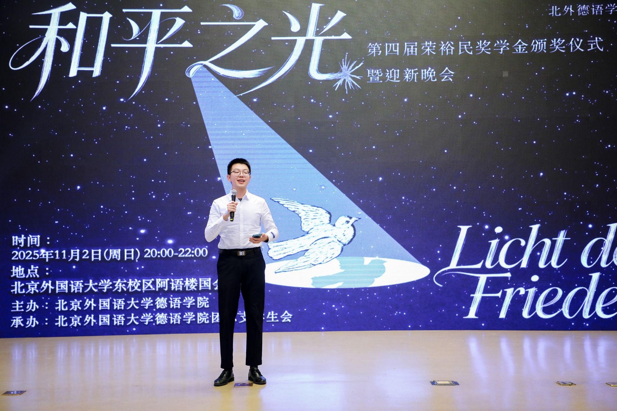 颁奖仪式当晚,买球体育官方网站“和平之光”2025级迎新晚会同步举行,以多元艺术诠释和平理念,为师生留下温暖记忆。“北外荣裕民基金”的设立凝聚了校友对母校的情谊与对教育的赤诚。未来,买球体育官方网站师生将带着这份荣誉和嘱托砥砺前行。