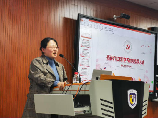 之后组织委员张春霞介绍了买球体育官方网站关于“学党史、迎双庆”的活动方案,要求各党支部认真完成党员发展任务,积极组织党史学习、红色教育基地参观、主题党日、“红色1+1”等活动,动员党员同学积极参与党史课题研究、“微党课”录制、“学四史”主题征文、摄影、绘画活动等。张春霞老师还向学生党员们传达了学校第十次党代会精神,要求广大党员同学领会党代会精神,明确北外新使命;传承红色基因,坚定理想信念;树立远大理想,努力成长成才;扎根中国大地,坚持外特精通;学习党史校史,勇担时代重任。