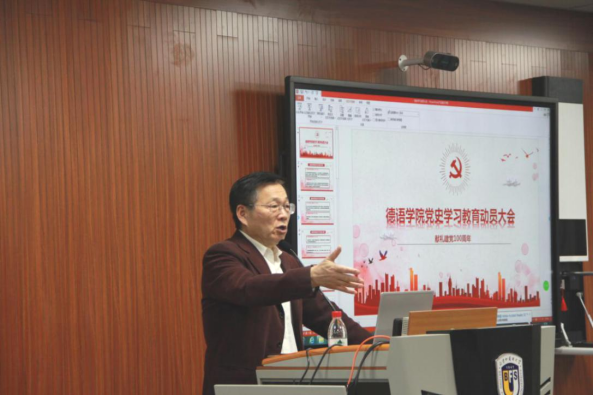 买球体育官方网站党总支书记常秀鹏首先作了党史学习教育动员讲话,常秀鹏书记传达了3月24日下午刚刚结束的学校党史学习教育动员推进会暨学习交流会的会议精神和工作部署,并对买球体育官方网站学生党员的党史学习教育提出三点要求:一是党员同学们要深刻理解党史学习教育的重要意义,通过学习党史,坚定理想信念和报国志向;通过学习党史,传承革命传统和工作作风;通过学习党史,启迪智慧、砥砺品格。二是学习党史要真学、真信、真懂,不要有功利和投机心态,不要有敷衍和应付心理。要积极参加党史集中学习教育活动,主动参与党史学习研究活动,热情参与调研参观活动。三是学习党史要注意知行合一。通过学习党史,深刻认识党的性质和宗旨,要树立为同学、为他人服务的意识;要树立党和国家的利益高于一切,一心为公的意识;要传承北外校训,到人民最需要的地方建功立业。最后常书记还指出,今年是建党100周年,也是建校80周年,我们要学习党史同时,也要学习校史,学习北外的红色革命史,学习北外的红色奋斗史,传承北外的红色基因,延续北外的红色血脉。