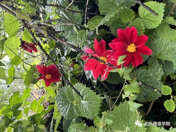 洛克故居门前用东巴文书写的对联“新年新月新气象 千花万花已出来(根据纳西族阿妈介绍音译)”让党员教师感受到了象形文字的魅力。