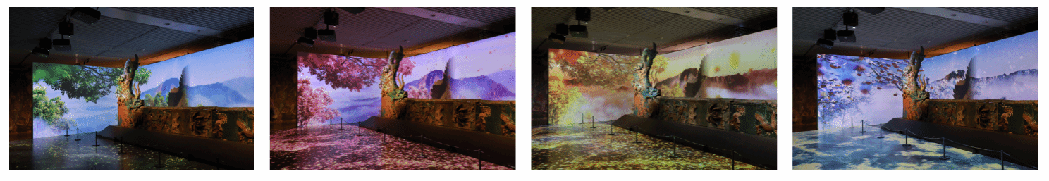 此次展览属于山西永乐宫文物全国巡展的一部分,包含披云真人宋德方石棺、完整拼合的明代《五龙捧圣》壁画等珍贵文物,展现了元代建筑与艺术的巅峰成就。这一展览突破传统模式,运用AI复原、VR大空间、3D建模等前沿技术,重现永乐宫建筑布局与壁画风貌。教师们通过佩戴VR设备,“飞临”永乐宫探索三清殿建筑细节,感受文物中的震撼场景。