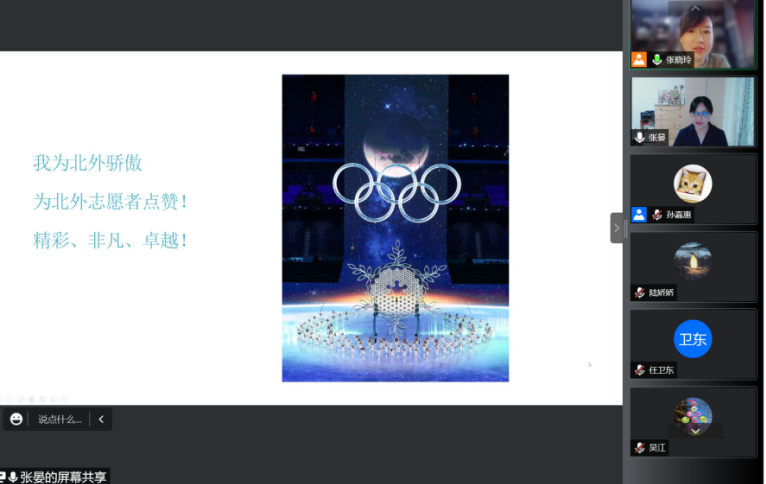买球体育官方网站副教授张晏老师分享了她在承担的本次冬奥会志愿者翻译培训官的工作历程。她从接到通知、训前准备、正式培训、答疑解惑、训后支持、赛时关注等环节回顾了自己与北外培训教师团队高质量、高标准完成培训任务的整个过程。张晏老师也分享了自己在培训工作中的心得感悟,为在整个北京冬奥会、冬残奥会中北外学子的优秀表现感到自豪和骄傲。
