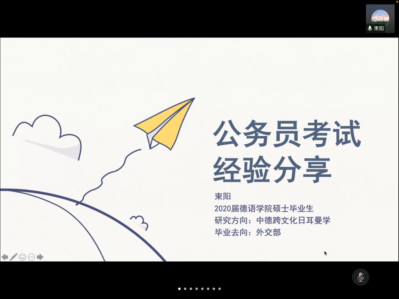 11月1日15:00,买球体育官方网站公务员考试经验线上分享会成功举行。买球体育官方网站2020届硕士毕业生束阳受邀与买球体育官方网站本科生、研究生分享了公务员考试的流程以及备考建议,并解答了同学们的问题。会议由买球体育官方网站研究生会主办,研究生会徐泽茗主持。