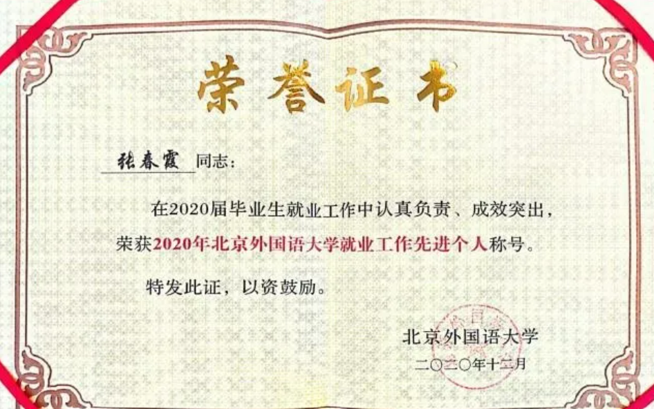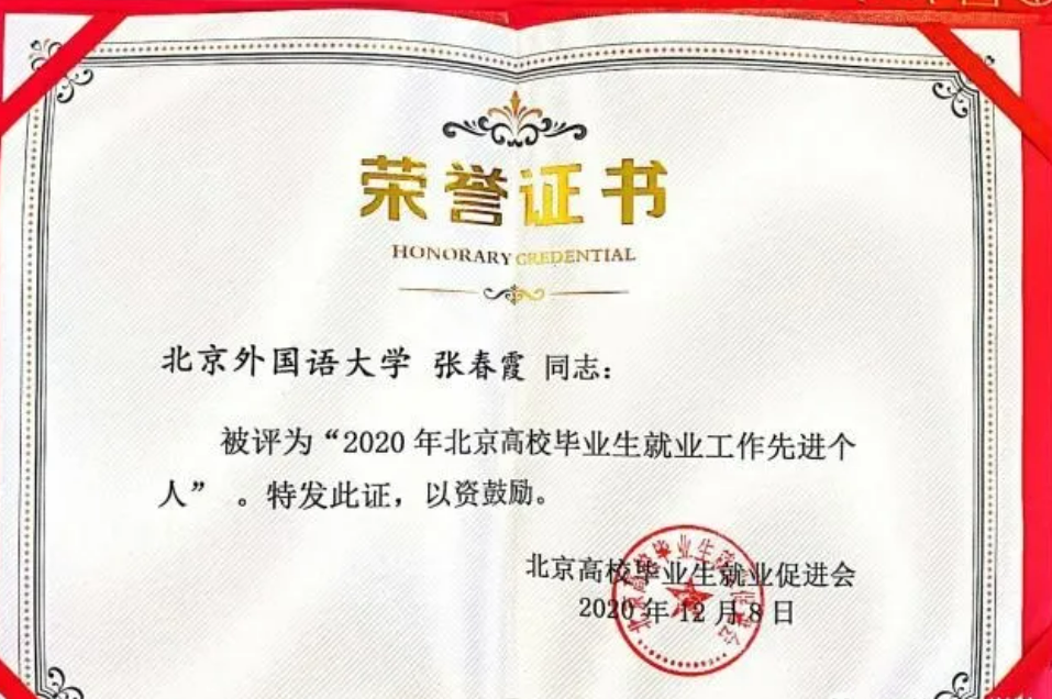 买球体育官网教师张春霞荣获“2020年北京高校毕业生就业工作先进个人”以及“2020年买球体育官方网站就业工作先进个人”等两项荣誉称号。张春霞老师作为获奖代表在总结会上发言。
