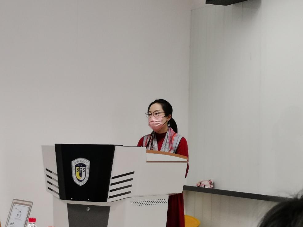 聘任仪式结束后,分享会正式开始。第一位分享的是从事策划编辑工作已13年的田恬校友。她主要从行业优势、选择这个行业的原因以及出版社工作日常三个角度为到场的师生们做了分享。首先,她谈到小语种学习者在图书编辑、策划领域所具备的独特优势,“使用外语,又不限于外语”是这个行业对外语工作者的期盼。随后,她详细介绍了出版社编辑的发展路径,特别提到出版社作为以内容甄选及生产为核心的文化产业,具有较高的整体素质和友好的沟通氛围。最后,田恬校友特别介绍了她所在的北京科学技术出版社,对当下的工作范围、合作伙伴和工作环境等进行了详细分享。