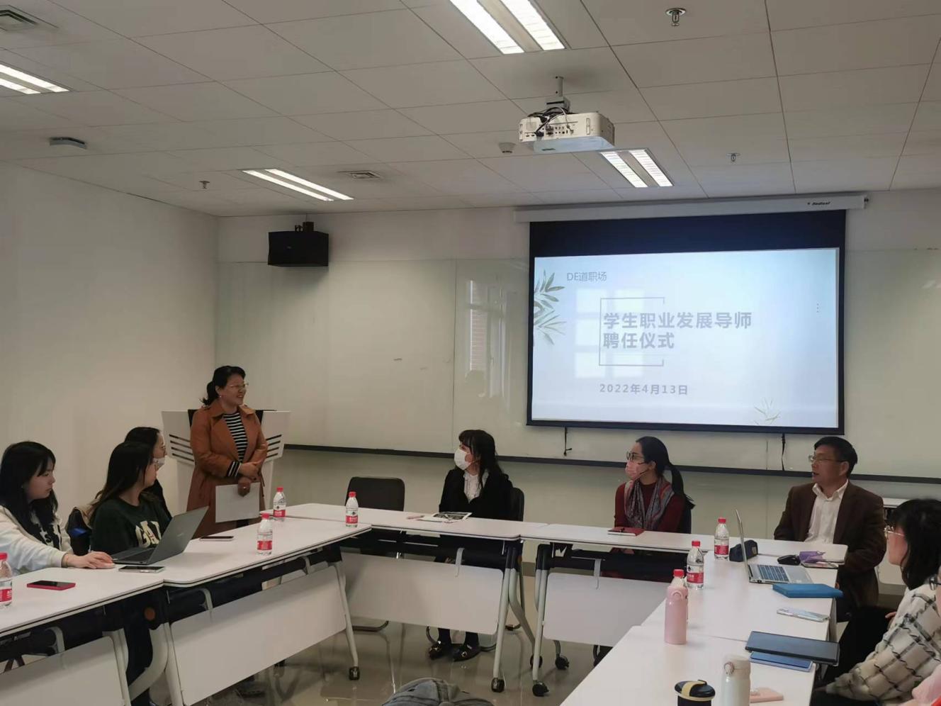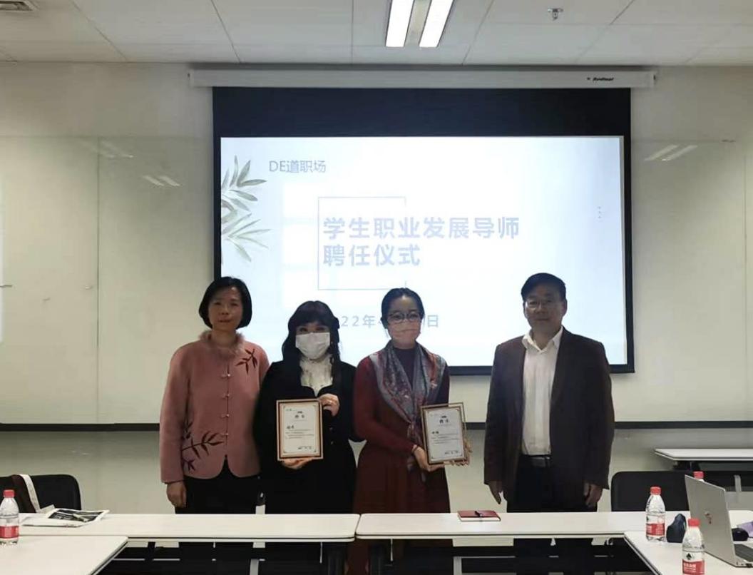 致辞环节后是DE道职场系列活动之学生职业发展导师聘任仪式。买球体育官方网站党总支书记常秀鹏和党总支副书记、院长吴江分别向两位校友颁发了聘书。“DE道职场——学生职业发展导师”项目拟邀请买球体育官方网站毕业校友回母校或在线为在校生开展就业指导讲座以及一对一就业咨询,旨在整合校友资源、增进在校生与校友沟通,促进买球体育官方网站学生职业发展。