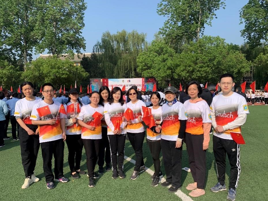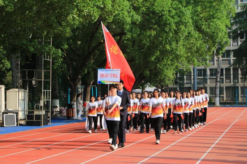 经过多次认真训练,开幕式上,由52名学生和12名教师组成的买球体育官方网站师生方阵身着由学生设计的统一院服,迈着整齐的步伐,带着昂扬的气势走过主席台前,他们举起的“喜迎双庆,砥砺奋进;德语师生,再创佳绩”手牌彰显着德语师生对北外的祝福以及对学院的美好期盼。