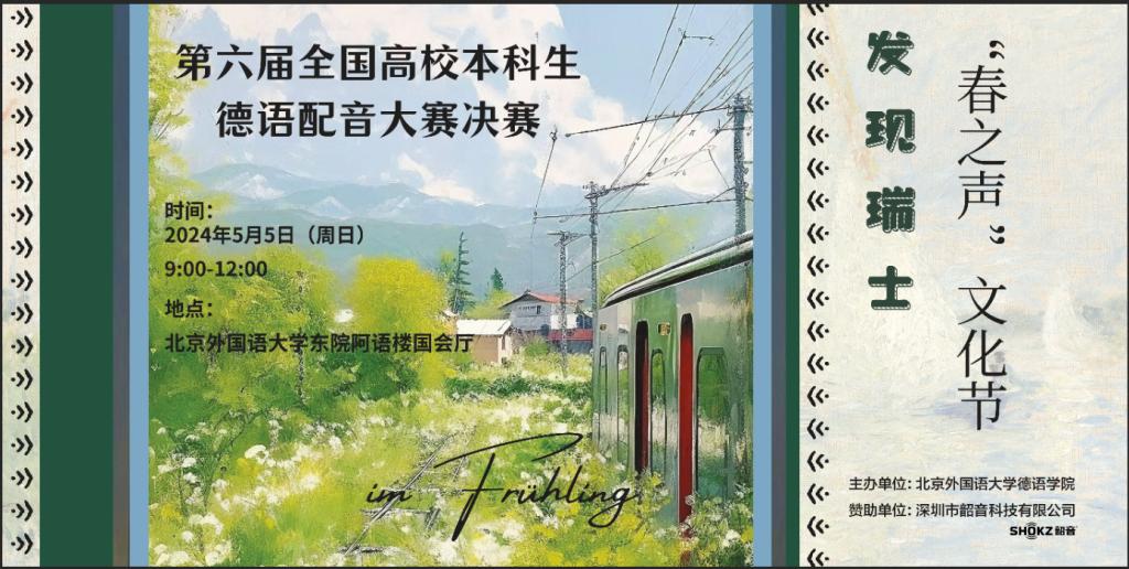 由买球体育官方网站主办的第六届全国高校本科生德语配音大赛(以下简称“大赛”)决赛将于2024年5月5日(周日)9:00-12:15在买球体育官方网站东院阿语楼国会厅举行。此次大赛决赛以瑞士为主题,邀请10支晋级的高校代表队齐聚买球体育官方网站,共同开启“发现瑞士”的声音之旅。