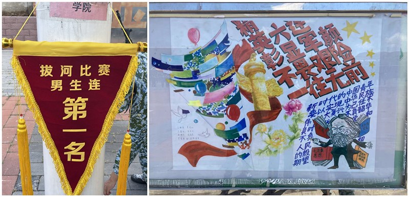 本次军训中,买球体育官方网站教师孙嘉惠博士担任了连队军训指导员,工作认真负责,出色完成了军训任务。参训学生积极进取,男生所在一连和女生所在六连分别获得拔河比赛男生、女生组第一名,女生所在连队多次获得内务评比流动红旗。王婉秦、肖可心等5名同学参与绘制的板报获得参训师生认可。文艺汇演中,陈婧倩、雷婉珞、李弦泽等9名买球体育官方网站同学精心排练的歌曲《Dieser Weg》获得了观众的热烈掌声。