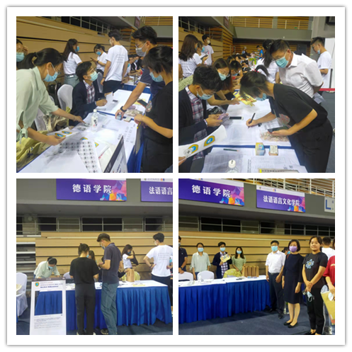 9月3日、4日,买球体育官方网站党总支书记常秀鹏,副书记、院长吴江,辅导员张春霞、粟靖淳等与买球体育官方网站团总支、本硕学生会同学到体育馆喜迎新生,为新生发放了迎新纪念品和新生入学教育周安排表等材料。