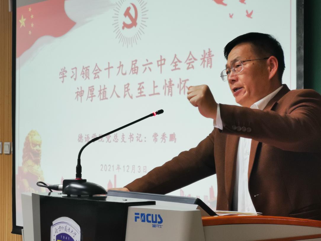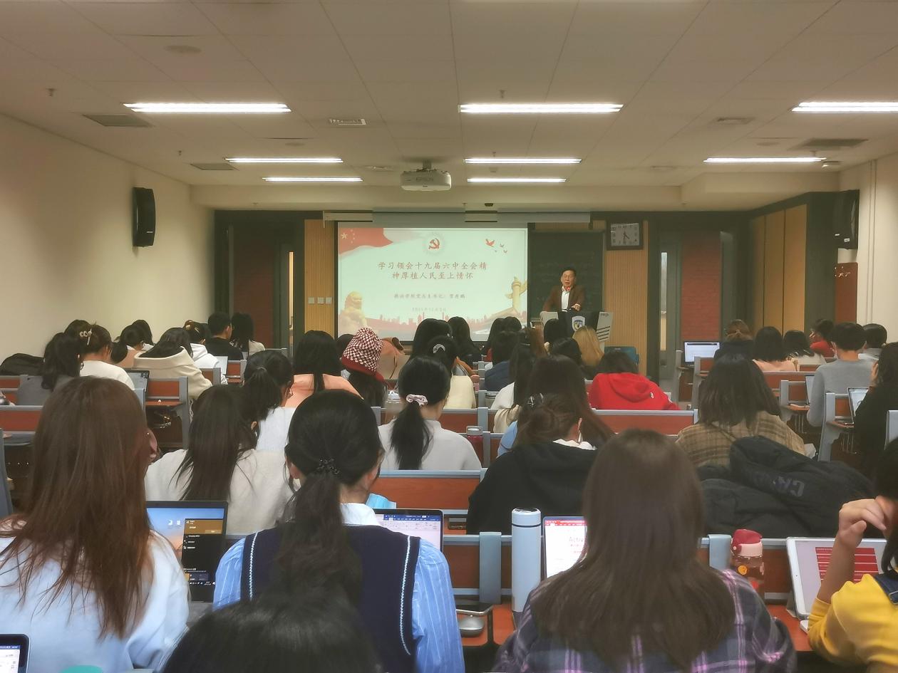 为深入贯彻校党委关于学习党的十九届六中全会精神的要求,提高广大学生党员、入党积极分子的思想觉悟和理论水平,12月3日下午4:30,在国际大厦413教室,买球体育官方网站举行“党总支书记讲党课”集体学习活动。学院党总支书记常秀鹏为本硕博学生党员、入党积极分子80余人讲授了以“学习领会十九届六中全会精神,厚植人民至上情怀”为主题的党课。辅导员张春霞、粟靖淳参加了学习活动。