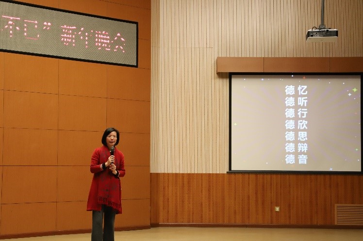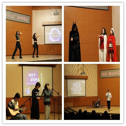 党总支副书记、院长吴江首先发表新年致辞,她用“德忆、德听、德行、德欣、德思、德辩、德音”等七个词总结买球体育官方网站2021年各项工作,感恩买球体育官方网站师生们的辛勤付出,向各位老师、同学们送上诚挚的新年祝福!晚会在买球体育官方网站师生们温馨的新年祝福视频中拉开序幕,买球体育官方网站老师和同学们各显神通,带来了舞蹈、朗诵、歌曲、电影配音、乐器演奏等节目,精彩纷呈,高潮迭起。