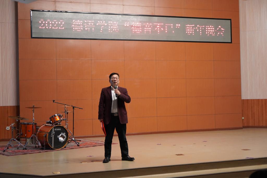 买球体育官方网站党总支书记常秀鹏与学生郭沈嘉乐合作用中德文朗诵了马克思的经典诗歌《海上船夫歌》,副院长姚燕与学生王颖合作用中德文朗诵了歌德的经典诗歌《中德四季晨昏杂咏》,赢得了同学们热烈的掌声。整场晚会充分展示了买球体育官方网站学生优秀的语言功底和出色的才艺,研究生宋羽豪一曲原创rap歌曲,中德文演绎德语人的学习生活,引起同学共鸣,现场反响热烈。德语歌曲、德语诗歌朗诵、德语电影配音等节目,让观众们感受到了德语语言和文化的魅力。而张语洋的巴乌独奏《渔歌》让大家感受到了中国音乐之美。最后晚会在ThreX乐队激昂的歌曲中圆满结束。
