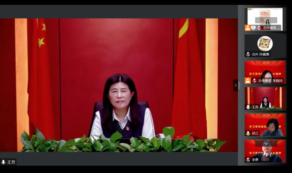 参会党员师生积极与王芳社长交流互动,踊跃分享学习心得。买球体育官方网站青年教师孙嘉惠、陆娇娇、顾苏及大四本科生曹涵先后提问。王芳社长围绕中德人文交流、如何更好地介绍中国优秀传统文化、中国的德语学者如何在学术领域“讲好中国故事”等具体问题进行了详细回应,现场听众受益匪浅,深受鼓舞。