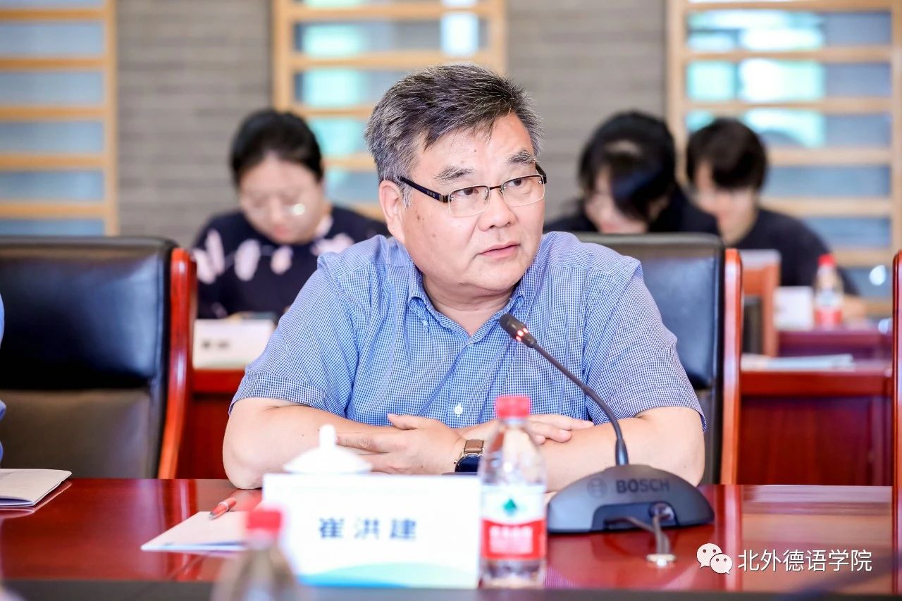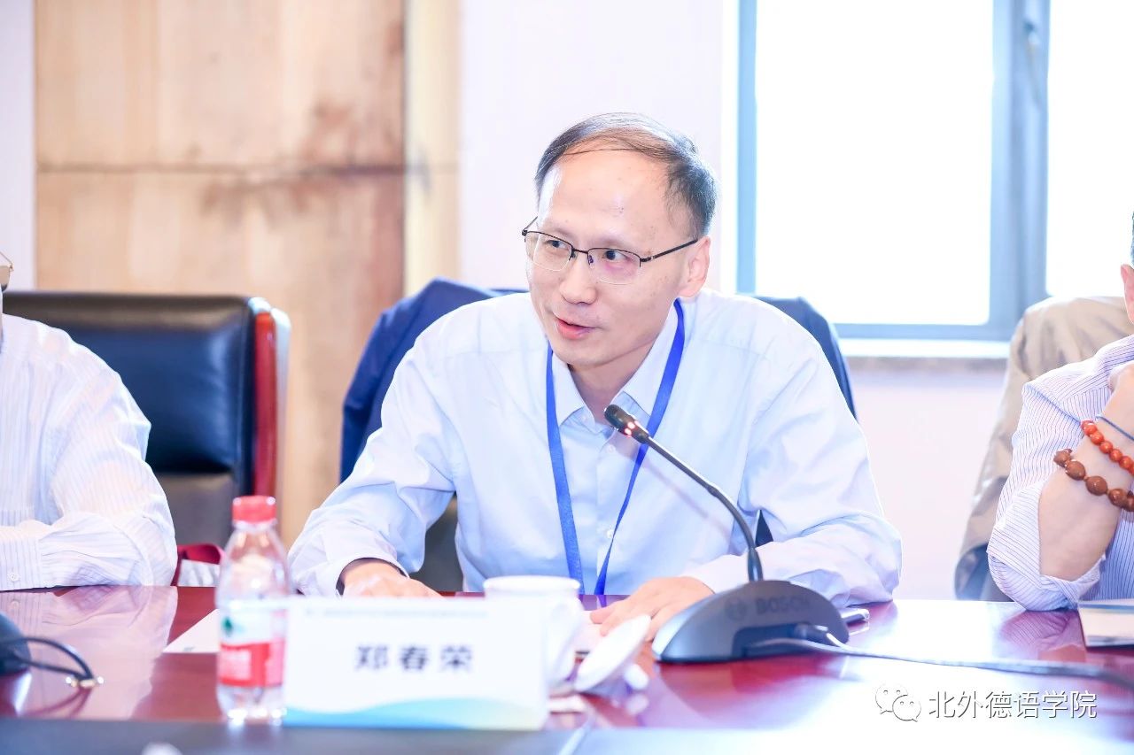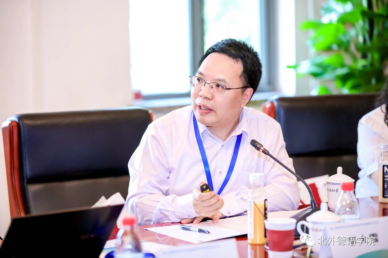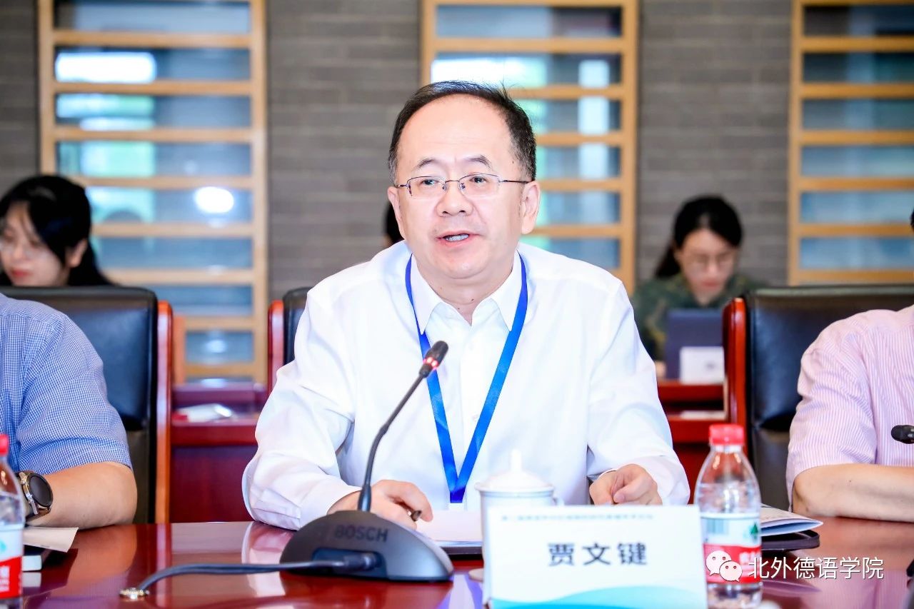 北外党委副书记、副校长,外指委德分委主任委员贾文键出席论坛开幕式并致辞。开幕式环节由北外买球体育官方网站党总支书记、院长,外指委德分委秘书长吴江主持。