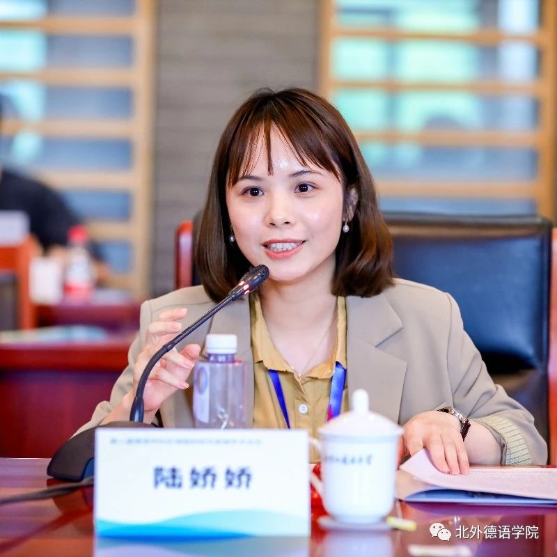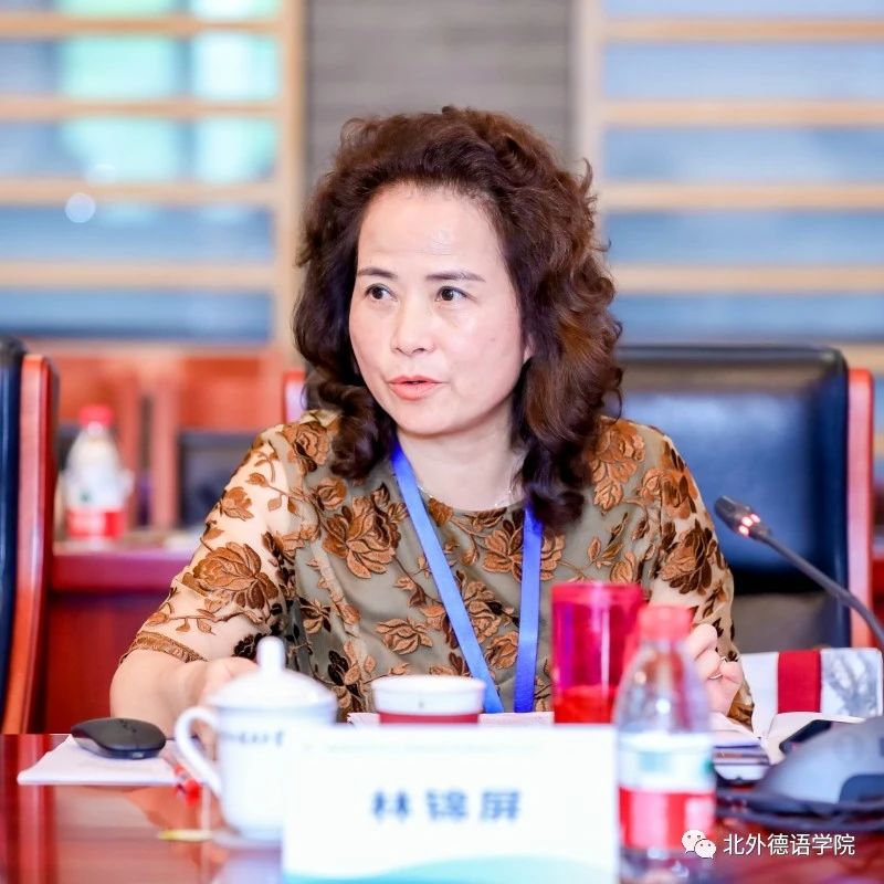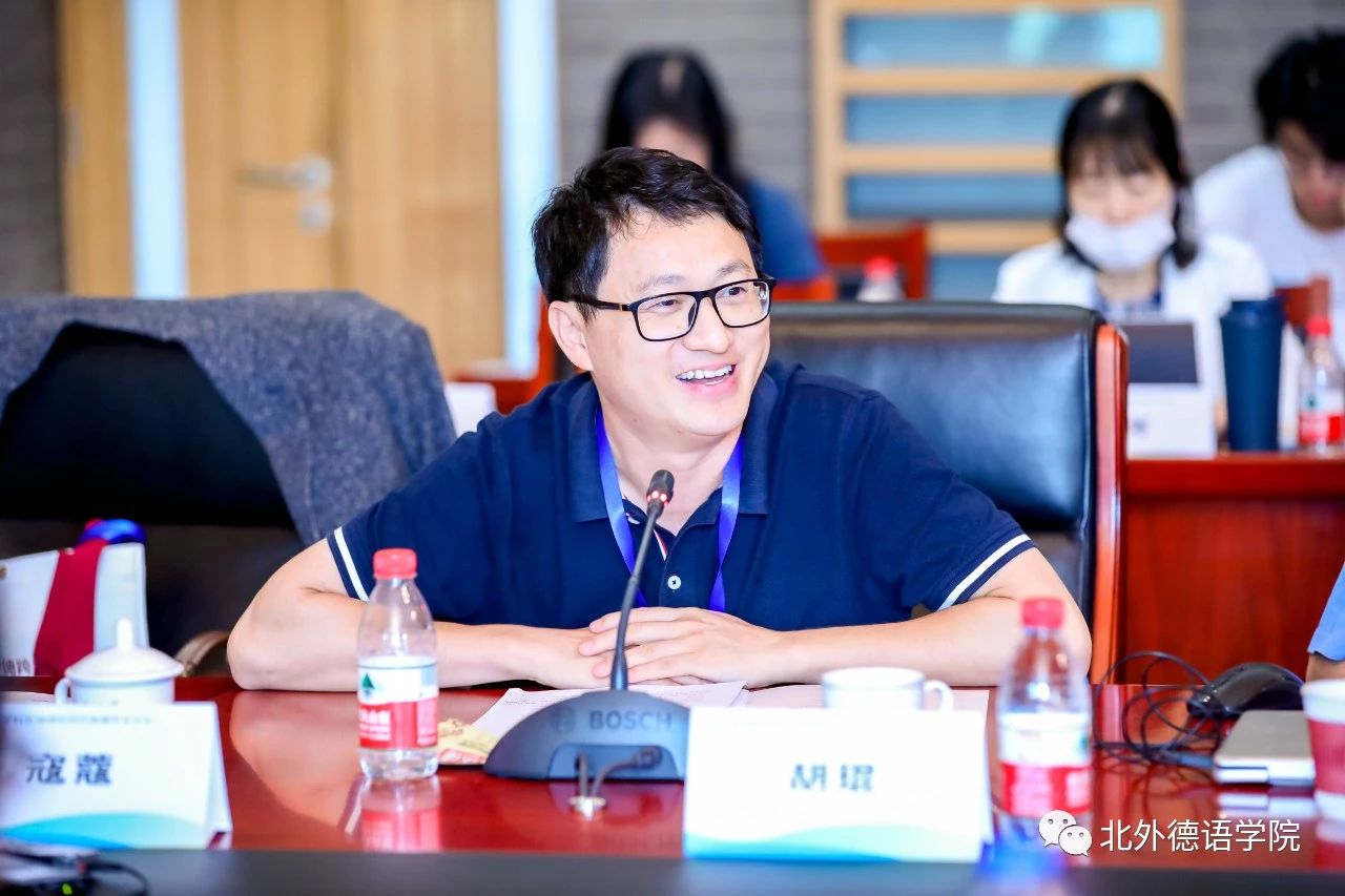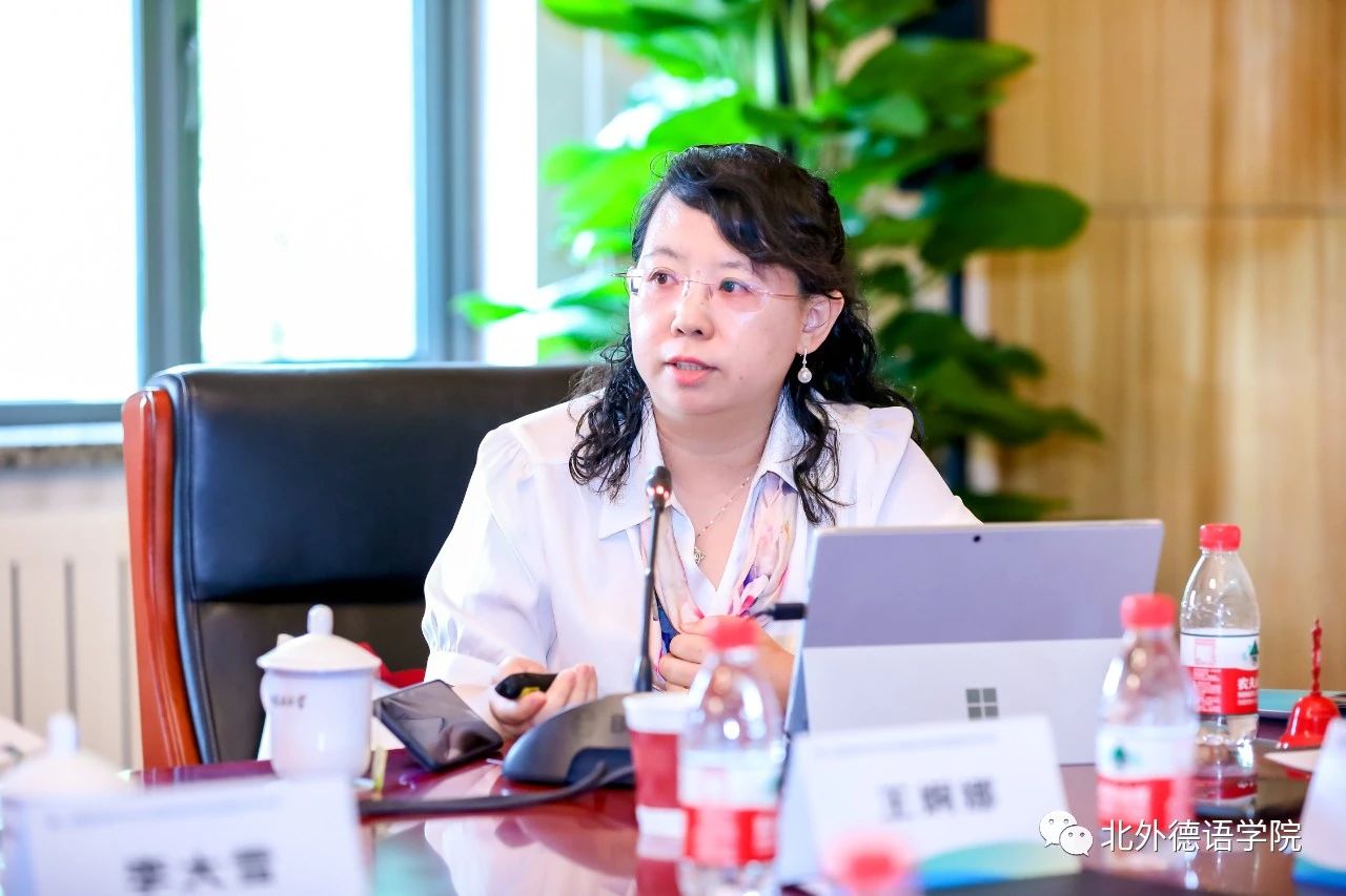 “教学教法与创新实践”主题研讨环节由北外买球体育官方网站研究生教研室主任陆娇娇主持。云南大学地球科学学院研究员林锦屏基于班杜拉社会认知理论,运用结构方程模型构建大学生线上自主学习效果模型,探讨了如何培养与挖掘大学生的学习潜力与创新能力以及如何提升大学生线上自主学习效果和教学质量。南京大学外国语学院德语系主任陈民以“拉贝日记与和平城市”团队的发展为例,分享了“知行合一”的教育创新案例。北外买球体育官方网站基础教研室主任李婧以新近出版的《新经典德语》教材为例,探讨了本科基础阶段教材融入国情与文化的思路与路径。北外买球体育官方网站党总支委员、本科教学秘书于芳分享了“理解当代中国”系列教材融入国别区域方向专业知识课程的实践与思考。北外买球体育官方网站本科一年级教学组长葛囡囡以日本德语教材为例,从符号学视角对呈现文化的图像及其与相关文字之间的关系以及图像发挥的作用进行了分析。在交流环节,与会嘉宾纷纷点赞全国高校德语学科点的创新实践以及教材建设成果。