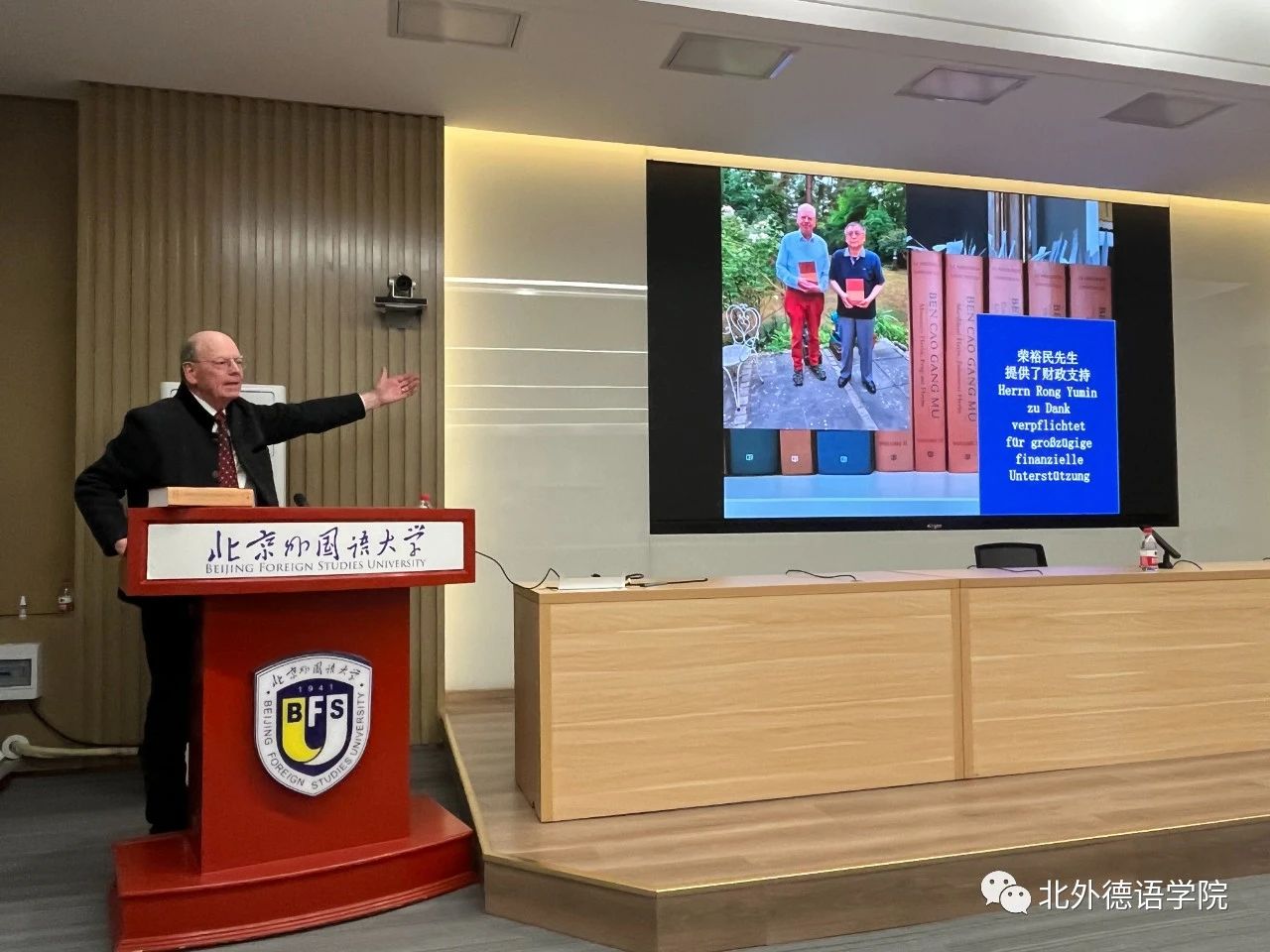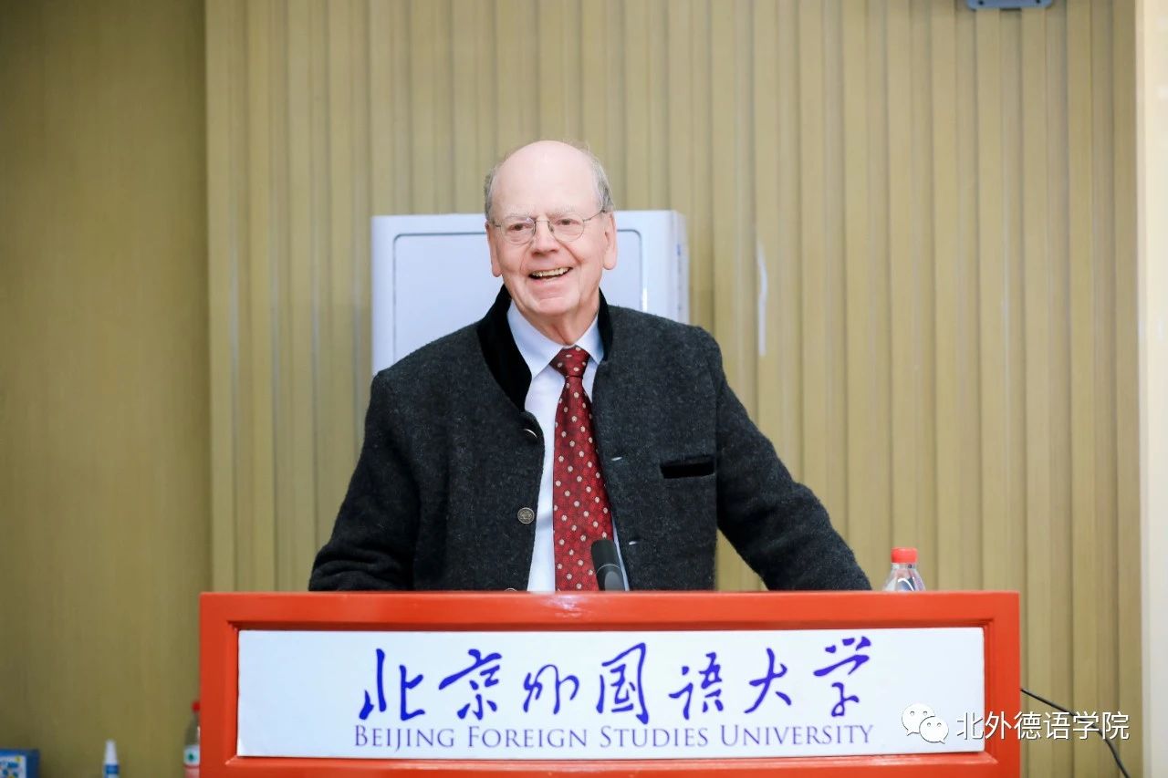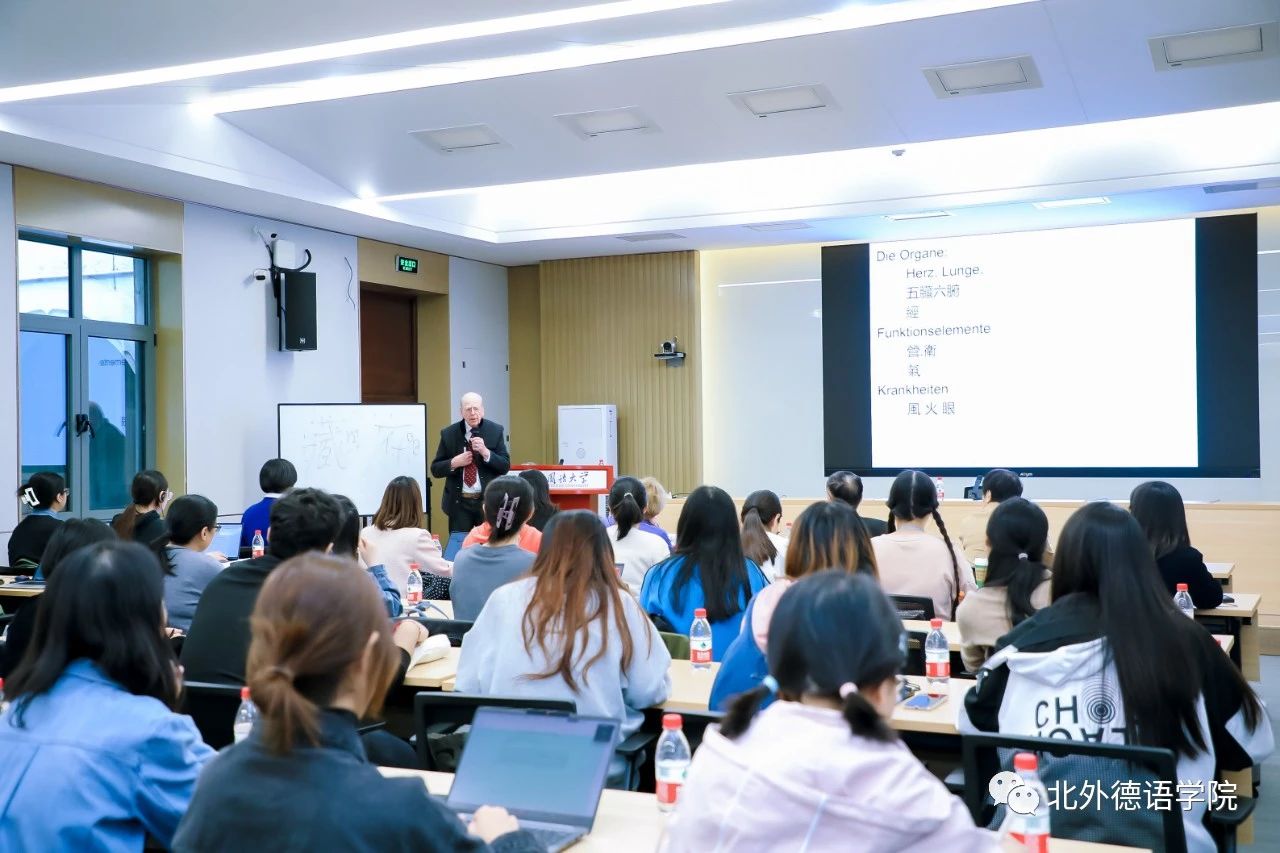 2023年10月18日下午,北外德语国家讲堂系列报告“中医古籍翻译的体会与心得——以《本草纲目》的翻译为例”在买球体育官方网站东院晨读厅成功举办。报告主讲人为德国著名医史学家、翻译家文树德教授(Prof. Dr. Paul U. Unschuld),专攻中、欧医学及生命科学比较史,尤擅长医学思想史、伦理史研究。文树德教授夫人文淑德女士(Ulrike Unschuld)、买球体育官方网站1977级校友、德国Rolux Leuchten GmbH 公司创始人、中国赛尔富电子有限公司董事荣裕民先生,买球体育官方网站党政联席会成员、教师代表及近百名学生聆听讲座。讲座由买球体育官方网站党总支书记、院长吴江主持。