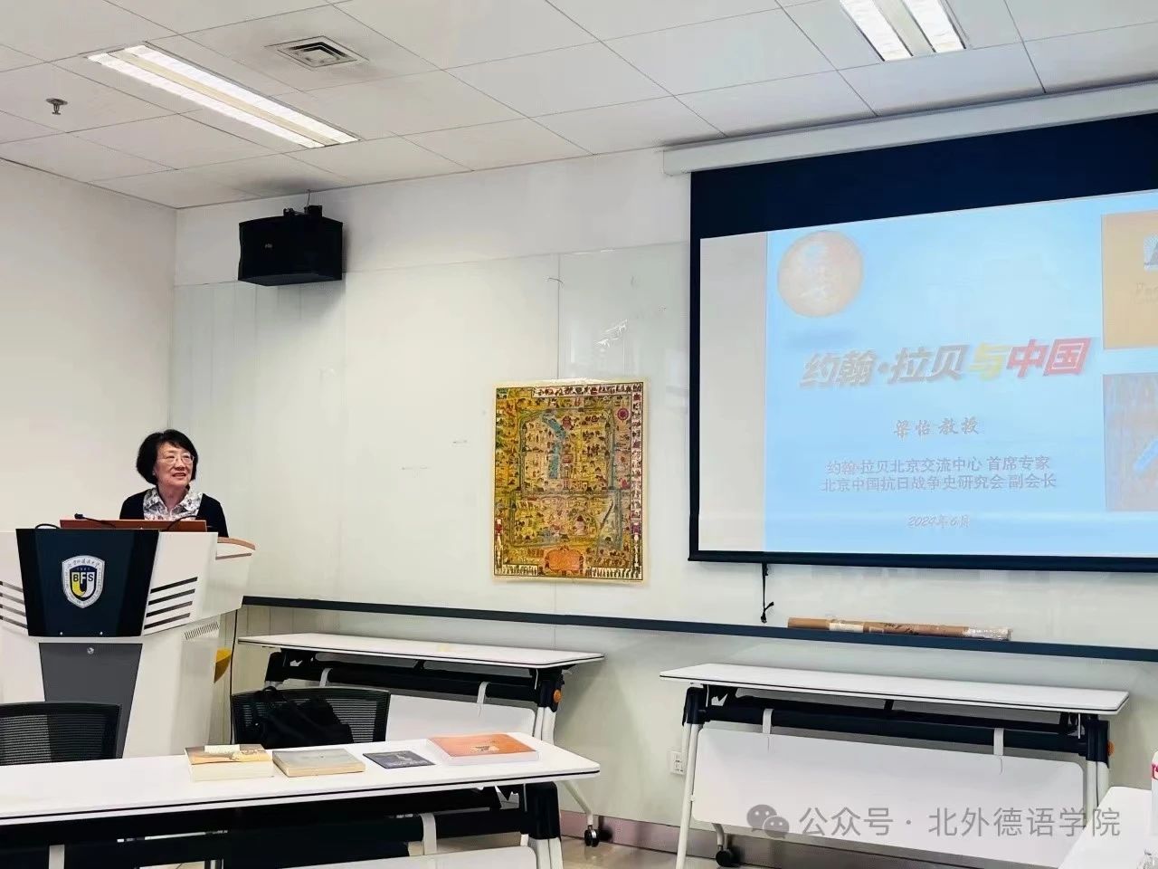 2024年6月13日下午,北京联合大学人文社科部原主任梁怡教授应邀为北外买球体育官方网站师生做题为“约翰·拉贝与中国”的讲座。本次报告会系买球体育官方网站人文社科通识系列讲座之一,讲座由买球体育官方网站书记、院长吴江主持。