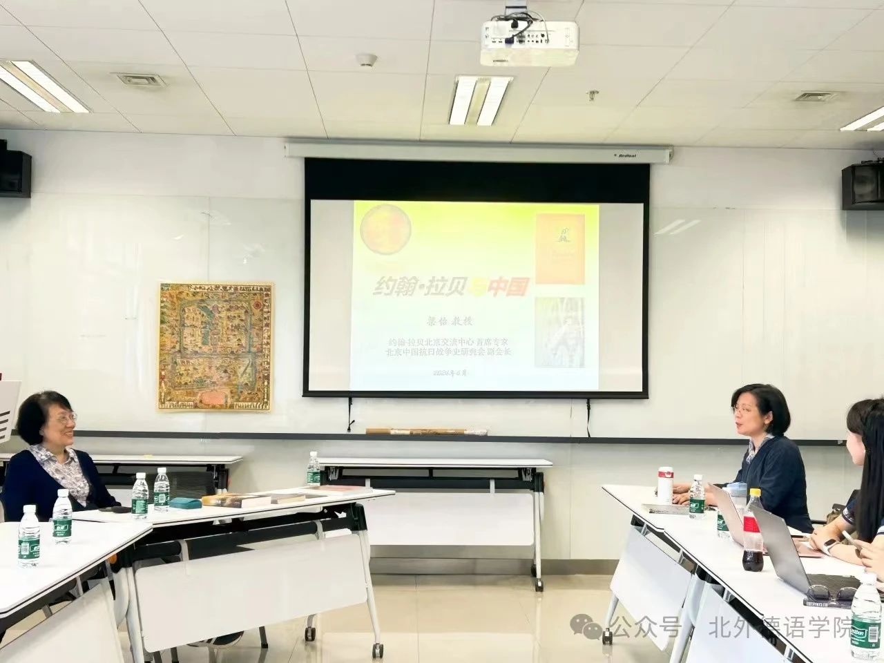 梁怡教授从自己与拉贝家族的渊源讲起,围绕她与拉贝家族间的21年的往来与情谊,着重从文化交流的角度介绍了编译出版《我眼中的北京》一书的由来以及位于北京联合大学的全球第六个约翰·拉贝交流中心的工作情况。