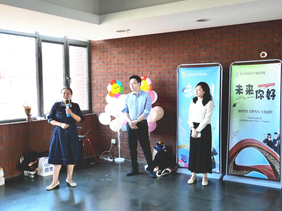 隆重的学位授予仪式后,买球体育官方网站师生在国际大厦10层举办了温馨的毕业生欢送会。买球体育官方网站党总支委员、副院长张晓玲、寇蔻,买球体育官方网站党总支组织员、辅导员张春霞、基础教研室主任李婧、研究生教研室主任陆娇娇等为毕业生送上祝福。