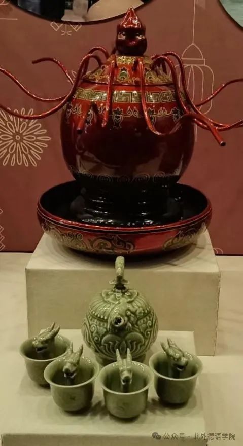 倒流壶与公道杯的设计充满了哲理与智慧。倒流壶这一独特的茶具,以其反常规的设计令人叹为观止。使用时需将壶倒置,酒或水从壶口流入,放正后则滴水不漏。这种设计不仅体现了古人的创新思维,更寓意着“倒流而归真”,象征着对自然规律的敬畏和对生活的哲理思考。公道杯则以其独特的“满则漏”功能,告诫人们要知足常乐,不可贪婪。相传公道杯源自唐朝,唐明皇曾以此杯赐给杨玉环,寓意着为人处世要讲究公道。这两件展品不仅展示了古代工匠的精湛技艺,更传递了深刻的文化内涵和道德观念。