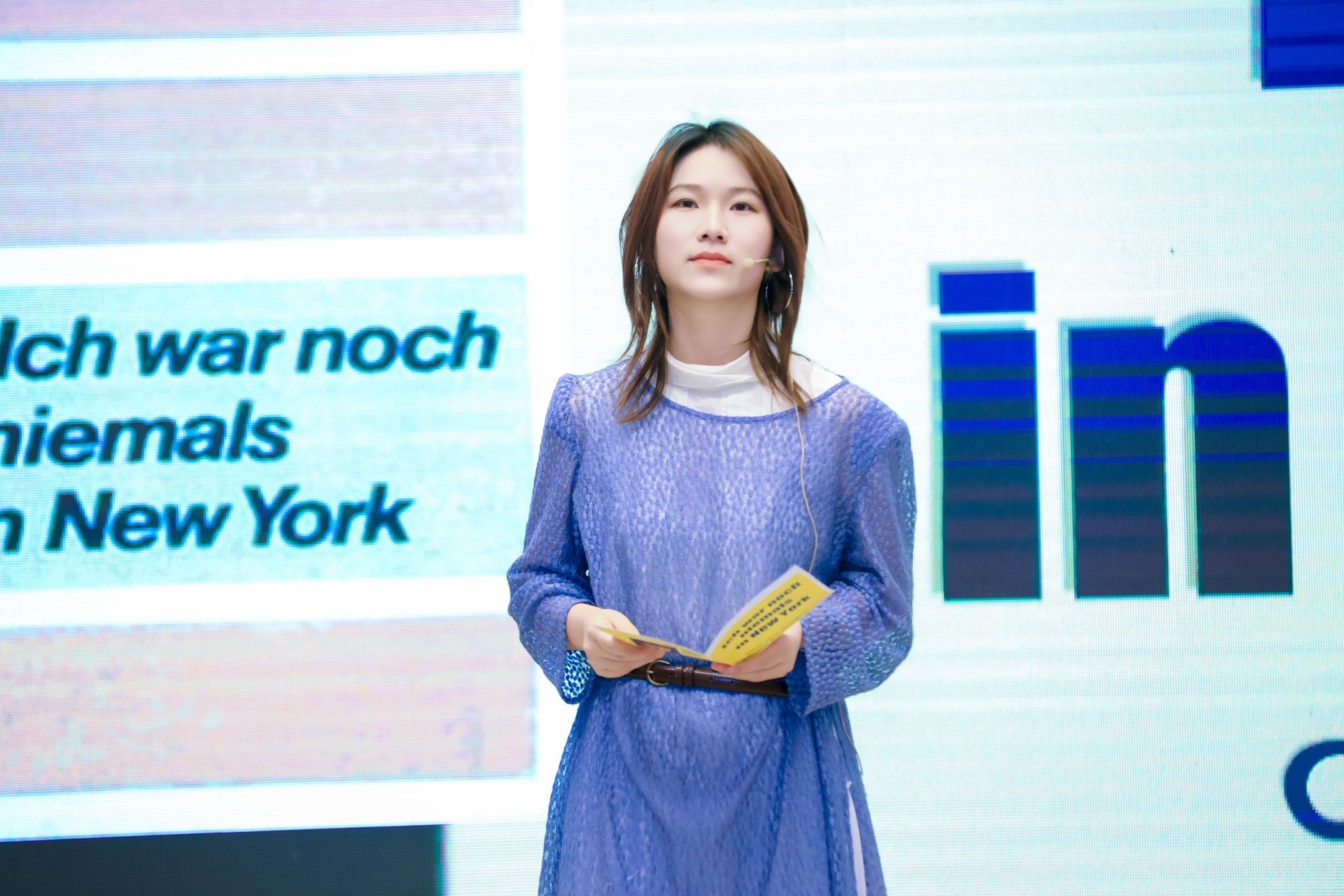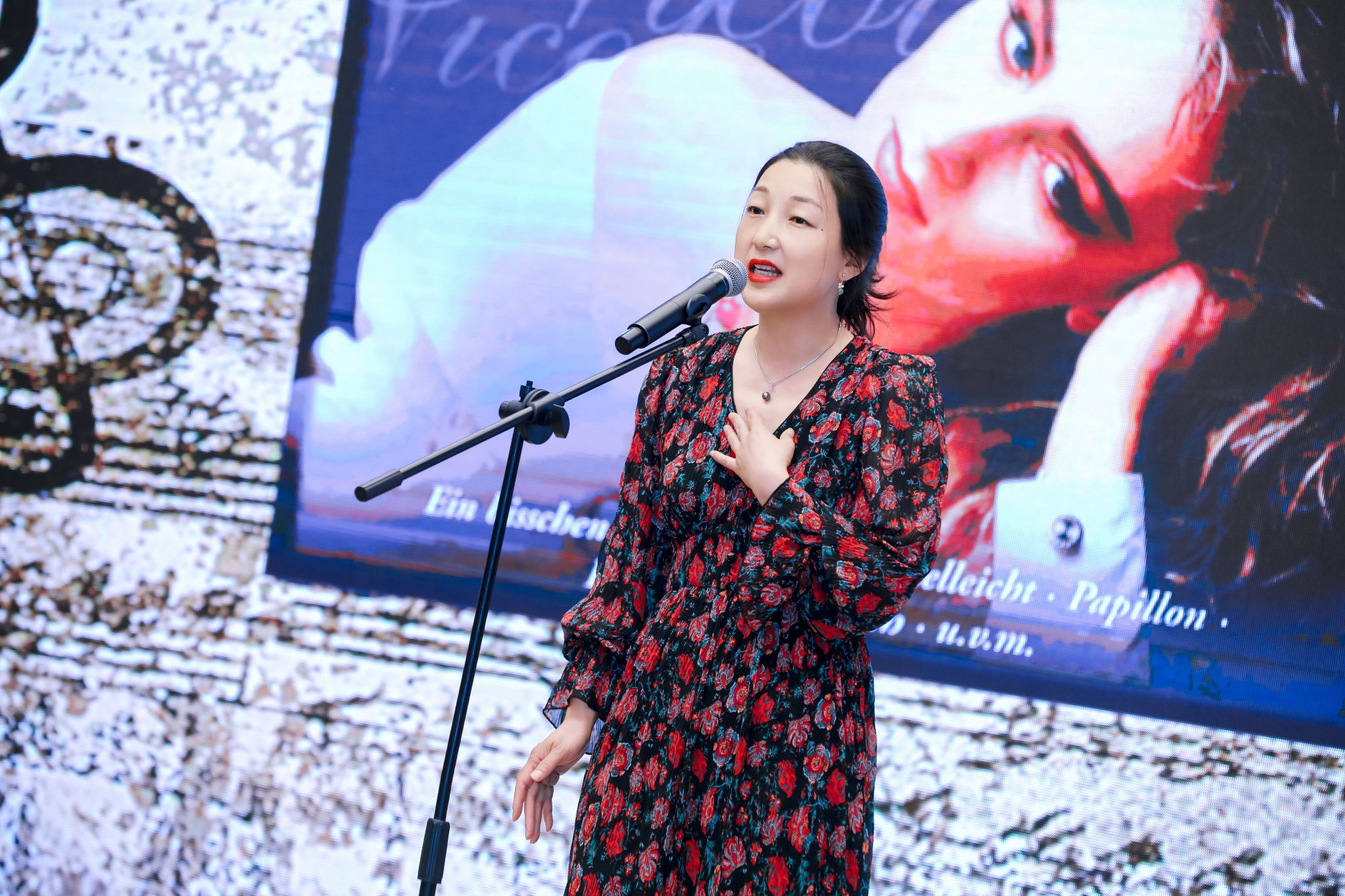 进入第三幕“同心同‘德’”,经典音乐剧《伊丽莎白》再现奥匈帝国的往事种种。潘颖老师深情演唱德语歌曲《So viele Lieder sind in mir》,引人入胜。夏日组诗朗诵在古典乐曲的伴奏下,为联欢会增添诗意光辉。