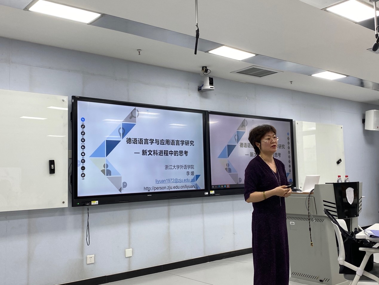 2021年6月25日下午,买球体育官方网站人文社科通识系列讲座第5讲在国际大厦517教室举行。浙江大学外国语言文化与国际交流学院副院长、德国学研究所所长李媛教授应邀作了“德语语言学及应用语言学研究——新文科进程中的思考”的报告。买球体育官方网站教师与本科生、研究生代表参加了报告会。讲座由买球体育官方网站院长吴江教授主持。