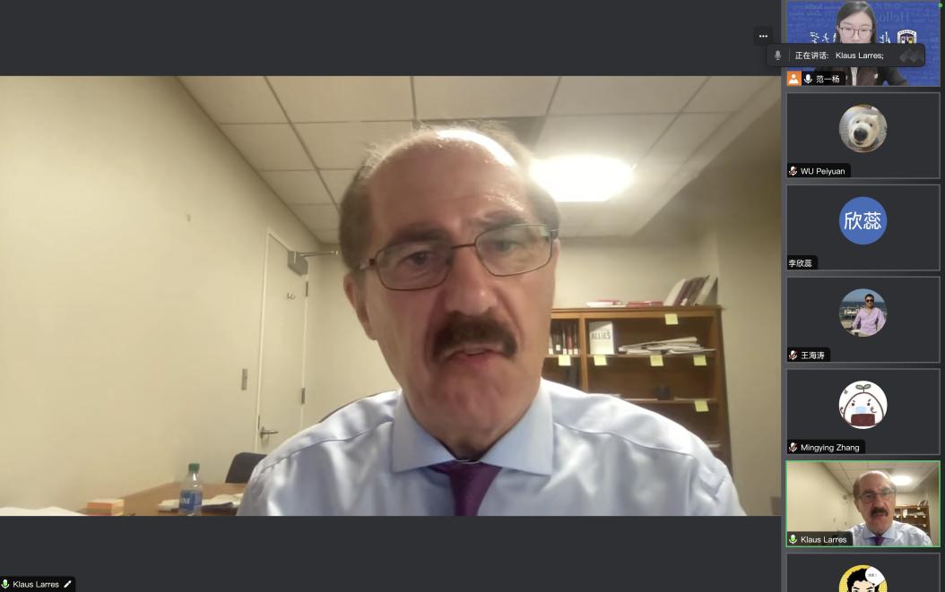 2024年4月11日和5月9日,美国北卡罗莱纳大学教堂山分校克劳斯· 拉雷斯(Klaus Larres)教授应买球体育官方网站邀请为师生举办了两场线上讲座,青年教师范一杨负责组织和主持了两场讲座。