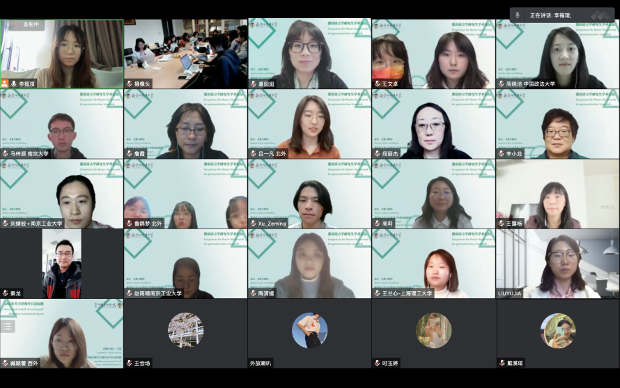 学生论坛中,我们也看到了来自买球体育官方网站、北京理工大学、中国政法大学、西安外国语大学、上海理工大学、浙江大学、南京大学和南京工业大学八所高校的十六位硕士研究生们在一天的紧凑日程中呈现了十六场精彩的报告。值得一提的是,浙江大学、南京大学和南京工业大学是今年刚刚加入我们研究生论坛的友校,八所高校的德语语言学专业互联互通,在这个学术平台上交流互享,为论坛源源不断地输送着新鲜的学术力量。我们也期待着未来能有更多所友校与我们携手同行。