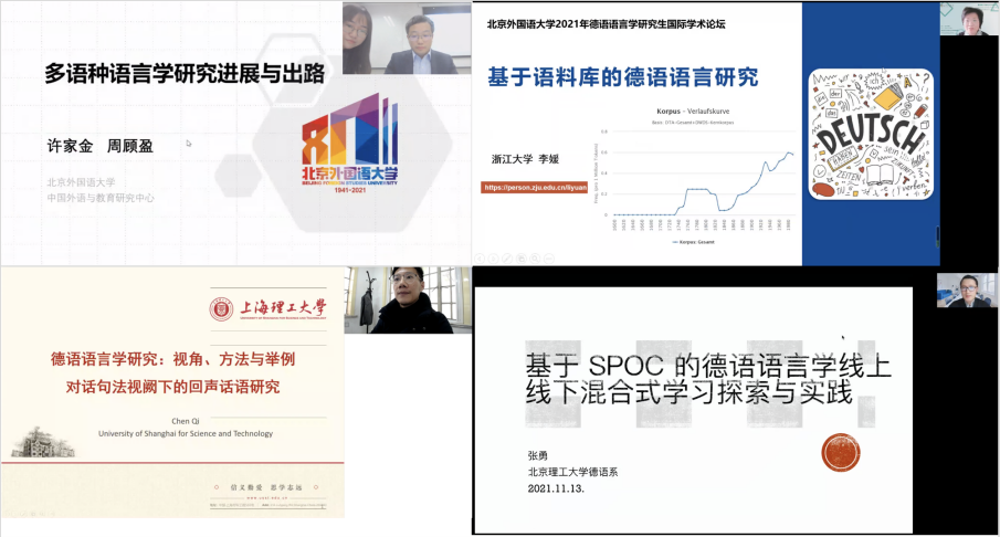 2021年11月12日至11月13日,德语语言学研究生学术论坛在买球体育官方网站成功举办。2020年为本论坛元年,今年已是第二届,论坛在买球体育官方网站院长吴江教授的致辞后正式拉开序幕,正如吴江教授在致辞中所言,本届论坛的亮点在于:线上线下并行、校内校外携手、国际国内联动。今年论坛,除了已经较为成熟的学生论坛外,我们还非常荣幸地邀请到了诸多中德专家进行前沿学术研究的分享交流,下面是对本次论坛的回顾。