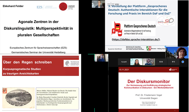 在论坛的专家报告方面,海德堡大学(Universität Heidelberg)的Prof. Dr. Ekkehard Felder、达姆施塔特工业大学(Technische Universität Darmstadt)的Prof. Dr. Marcus Müller、锡根大学(Universität Siegen)的Prof. Dr. Friedemann Vogel和明斯特大学(Universität Münster)的Prof. Dr. Susanne Günthner四位德国专家教授为我们带来德国最新的语言学研究动态,买球体育官方网站许家金教授及周顾盈同学、浙江大学李媛教授及黄含笑同学、上海理工大学陈琦教授和北京理工大学张勇副教授也与我们分享自己的学术成果,专家们的报告或高屋建瓴,或钻坚仰高,他们在扎实研究的基础上循循善诱、不吝分享,让在场每一位都获益良多。