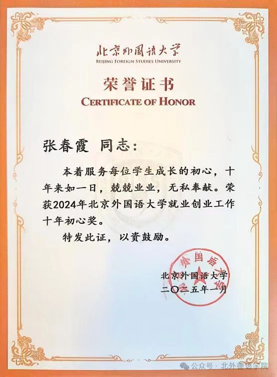 喜报|买球体育官方网站教师张春霞荣获北京市“基层就业卓越奖”及校级“就业创业工作十年初心奖”