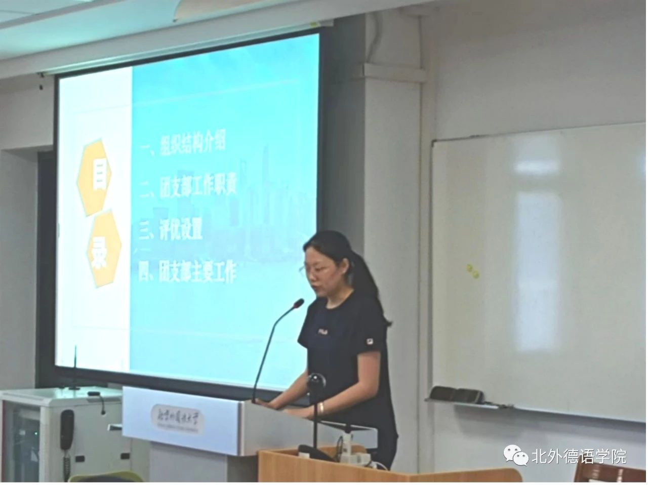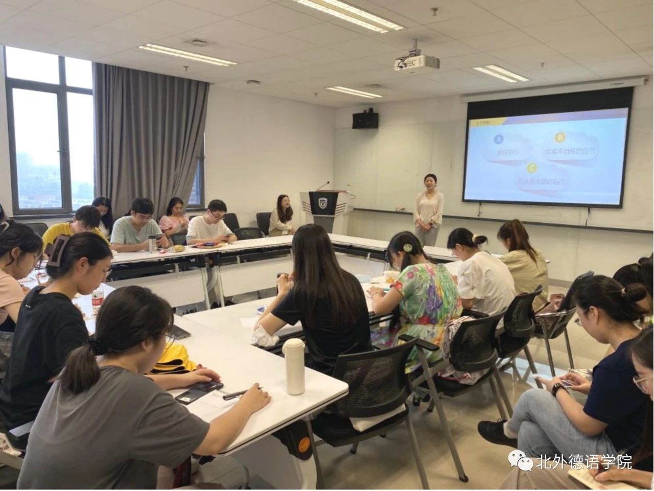 9月7日上午,在国际大厦1053会议室,买球体育官方网站举行研究生新生职业规划引航讲座。党总支委员、辅导员张春霞结合买球体育官方网站近四年研究生的毕业去向,介绍了买球体育官方网站研究生就业特点,分析了德语专业研究生就业形势和趋势,为新生进行职业规划提出相关建议,并进行了入党、安全、纪律等相关教育。