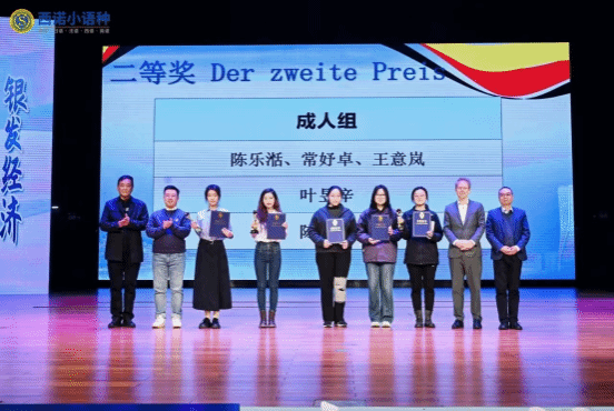 20251122日,银发经济:全球经验与中国创新——2025第九届可持续发展全国青年德语风采大赛决赛在浙江科技大学水晶剧场举行,买球体育官方网站2023级本科生陈乐湉、常妤卓、王意岚经过激烈的决赛环节,成功斩获成人组全国二等奖。指导老师葛囡囡老师获优秀指导奖。
