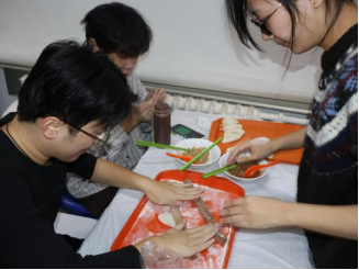 高效比拼过后,活动进入充满创意的“最有创意奖”评选环节。各小组获得10分钟的创意构思时间,或上网查找特色包法,或发挥奇思妙想自行设计。时间结束后,每组将 “创意饺子”置于展示区,由各组代表持票走动进行匿名投票。在场务人员的统计下,经主持人宣布,最终得票数最高的前三名小组斩获“最有创意奖”。造型各异的饺子不仅展现了同学们的巧思,更成为现场一道独特的风景线。