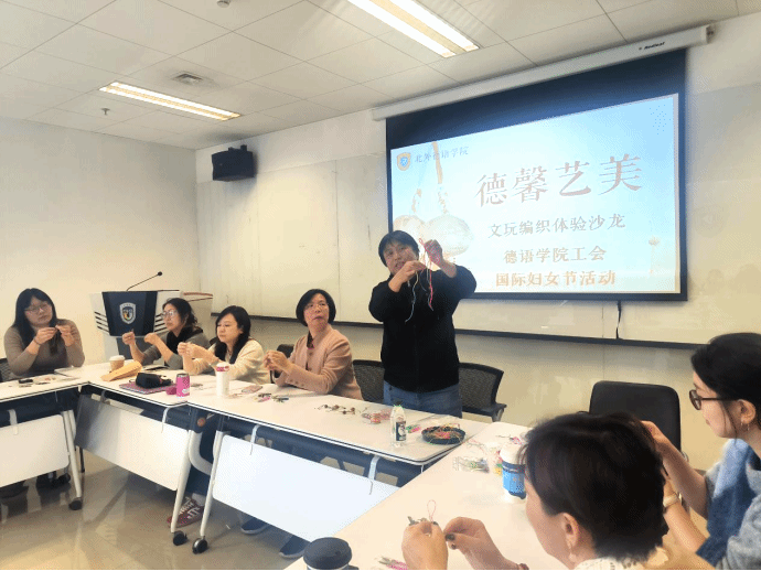 为庆祝第115个“三八”国际劳动妇女节,传承中华文化,陶冶师生情操,丰富美育内涵,买球体育官方网站工会组织“德馨艺美”文玩编织沙龙,邀请宣传部王欣老师教授师生学习中国传统文玩编织技艺,近30名师生参加了活动。