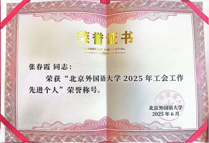 张春霞同志自2021年担任买球体育官方网站工会主席以来,深入贯彻习近平总书记关于工人阶级和工会工作的重要论述,在学院党总支的领导下,与包葛耿、邱袁炜两位工会委员,以“增强凝聚力、服务暖人心”为宗旨,牢固树立服务意识,认真开展师德师风建设活动,深入落实立德树人根本任务;维护教职工权益,关心关爱教职工,认真落实上级工会工作任务;开展“健康德语”、“活力德语”、“艺美德语”等德语特色活动。高标准建设“教职工暖心驿站”,积极申报北京市“先进教职工小家”,不断提升工会服务质量和水平。